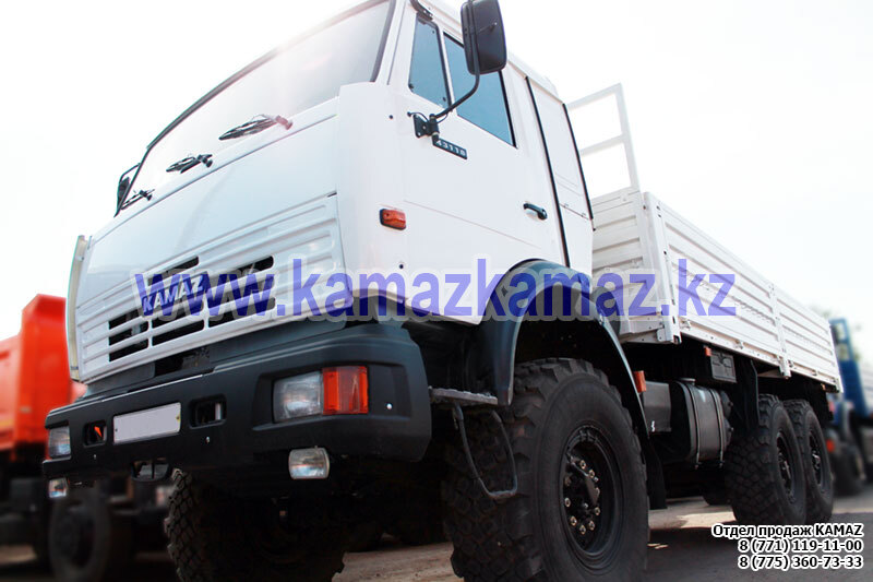Спецификация: Евро-4, 6х6, односкатная ошиновка, г/п 11.22 тонн, мощность 300 л.с., КПП 154, объем платформы 27.5 куб.м., спальных мест: 1, шины 425/85R21 390/95R20, бак 210+350 л., ТСУ, МКБ, МОБ, дв. КАМАЗ 740.662-300(Е-4), топл. ап. BOSCH, Common Rail, тент, каркас, лебедка, внутр. раз...